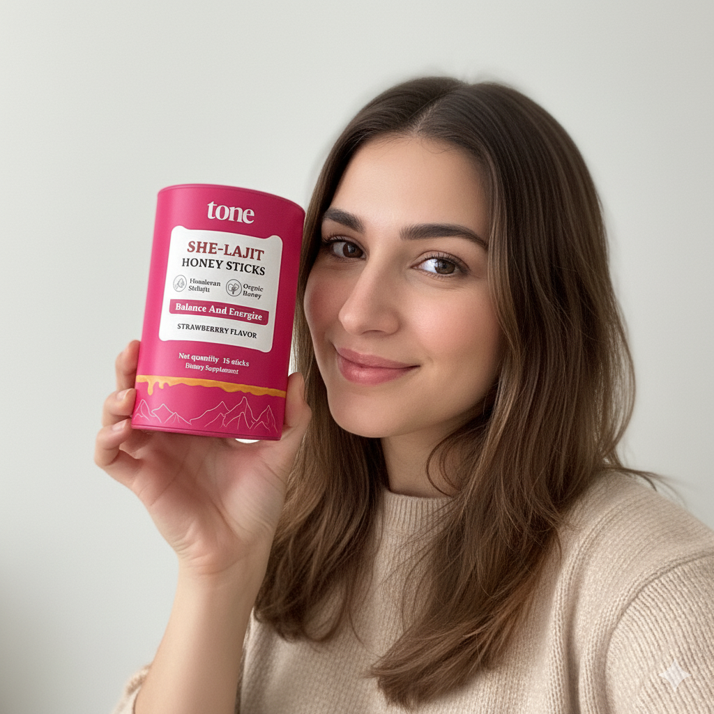 A 4-in-1 formula of Shilajit, Saffron, Shatavari & Honey — made by bees, made by mountains, made for her energy, glow, and groove.